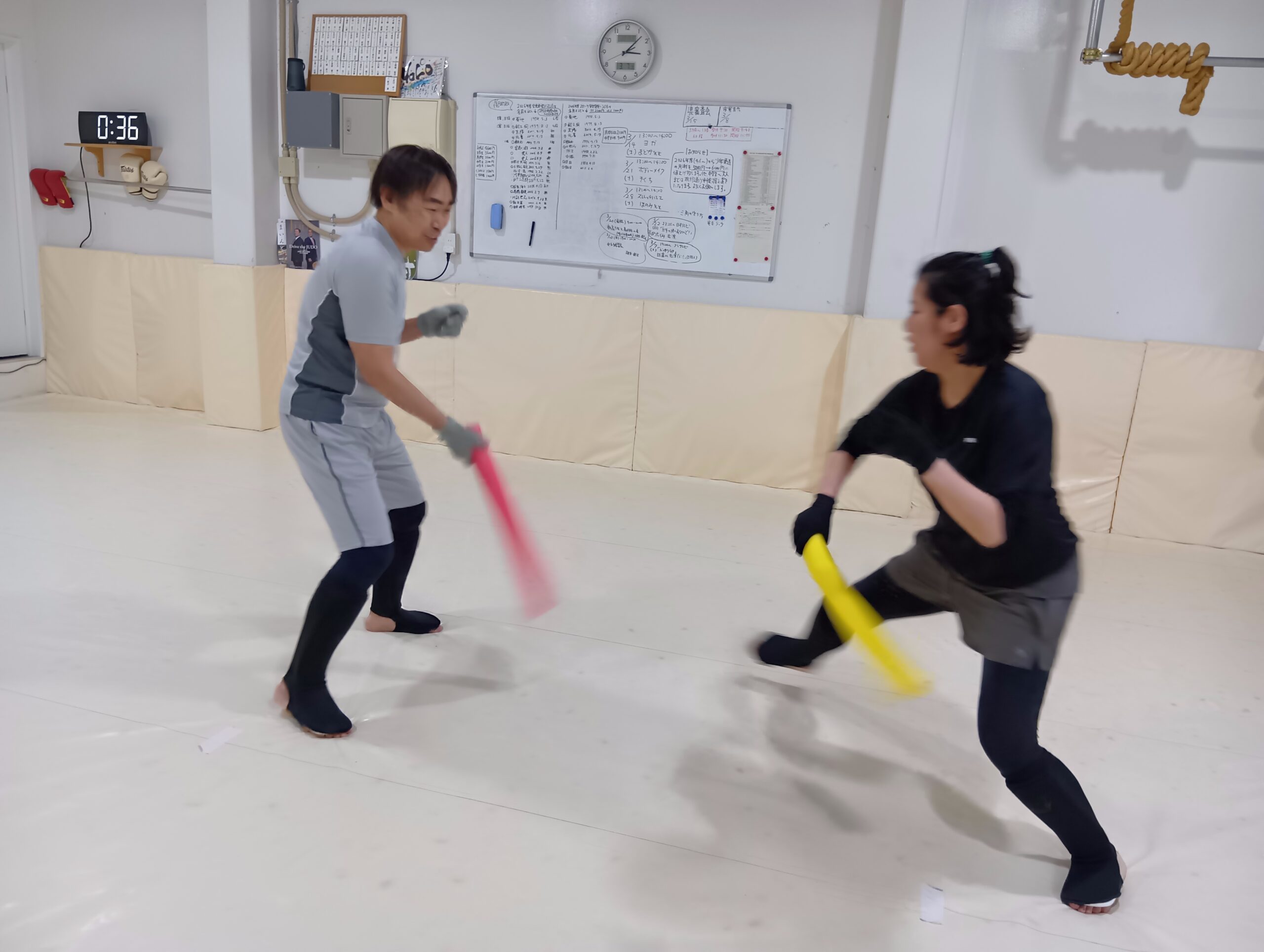 ミット打ちのあとはチャンバラで出し切りました。