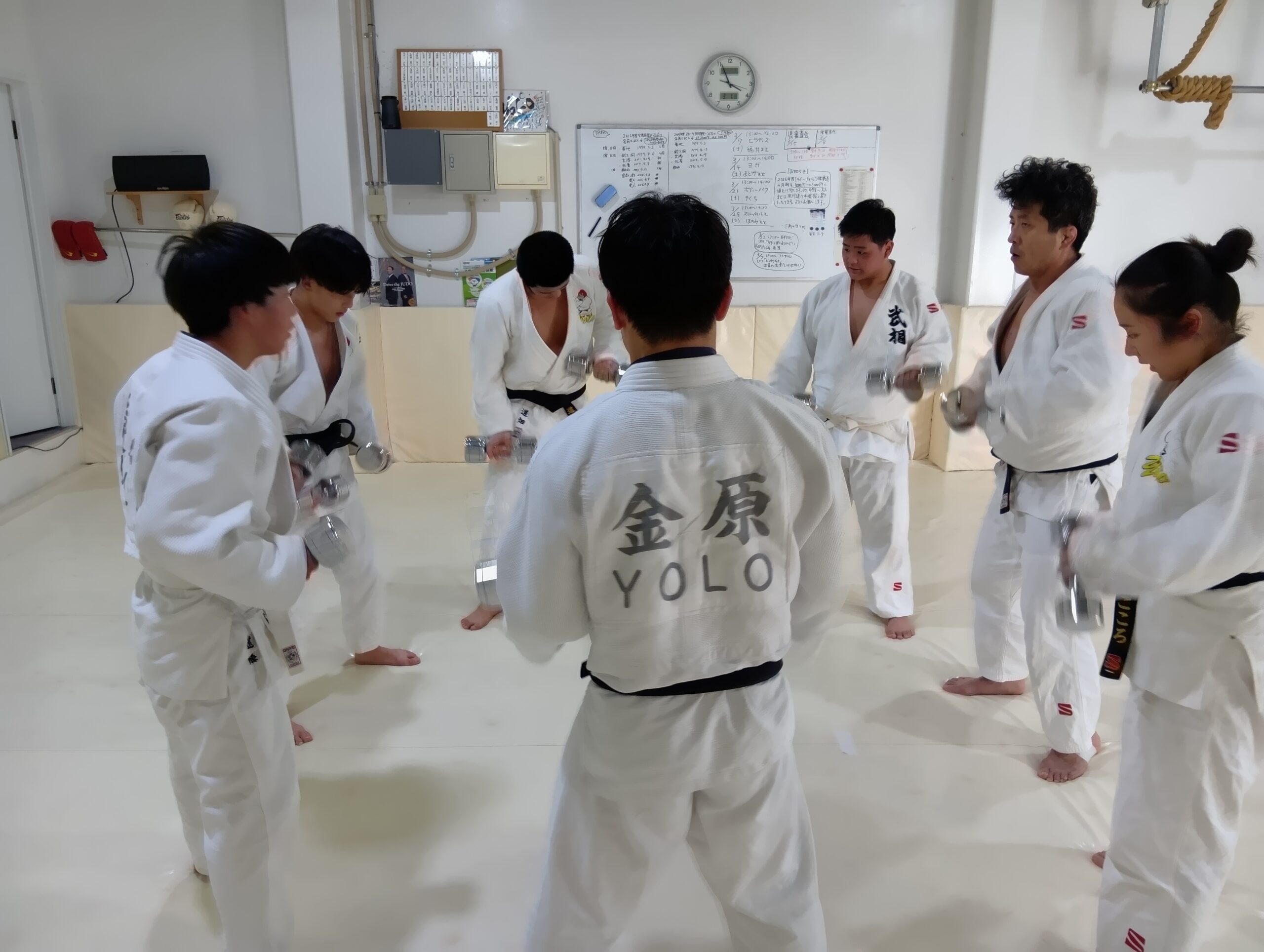 パーソナル柔道1名、フィットネスキックボクシング3名、大人柔道は見学1名を含めた8名、パーソナル柔道1名に参加して頂きました。